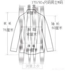 按照我国衣服标准号型表示法, 170 /92A代表这件大衣适合身高170CM,胸围92CM,体型适中(A)的人穿着。