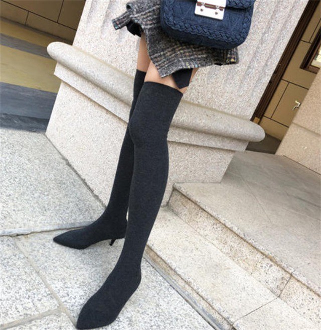 首先第一款式最近特别流行的连袜靴,为什么叫这个名字呢?这是因为鞋子的布料比较柔软一点,是纯棉的材质,而且布料都紧贴着皮肤,看上去就像是穿了一双长袜一样,这样的靴子一般长度在膝盖以下的位置,既可以秀出一部分的腿,还不会给人一种浮夸的感觉,是很时髦的单品,爱美的女生都会喜欢的。