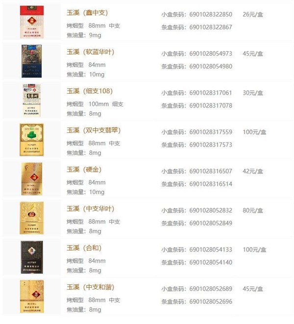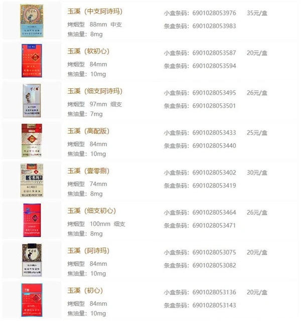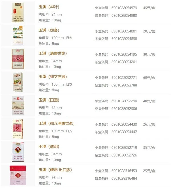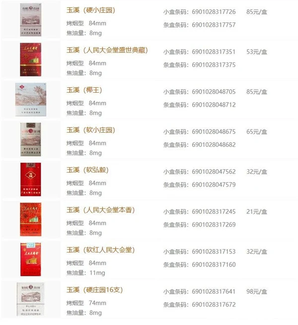 以上就是玉溪香烟大全