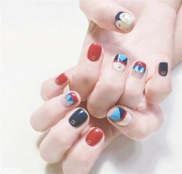 日系少女美甲果然很清新显美范儿,多种颜色配在一起很有时髦感,也有一种撞色之美。