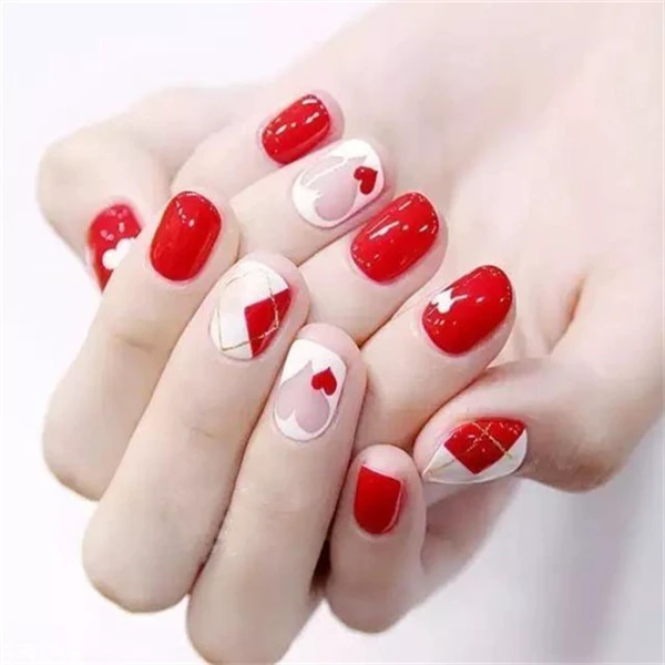 红色单色美甲+跳色设计确实很不错,颜色多样又养眼,上手效果也是相当nice,冬季涂了绝对洋气。