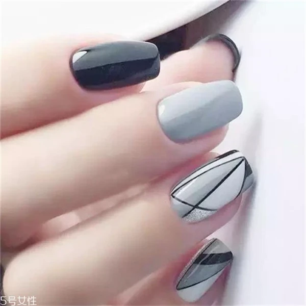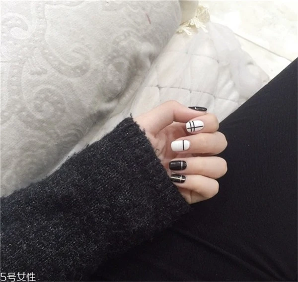 黑白美甲本来就是很简约的款式,即便是添上线条后,更是好看,有种北欧简约风的。