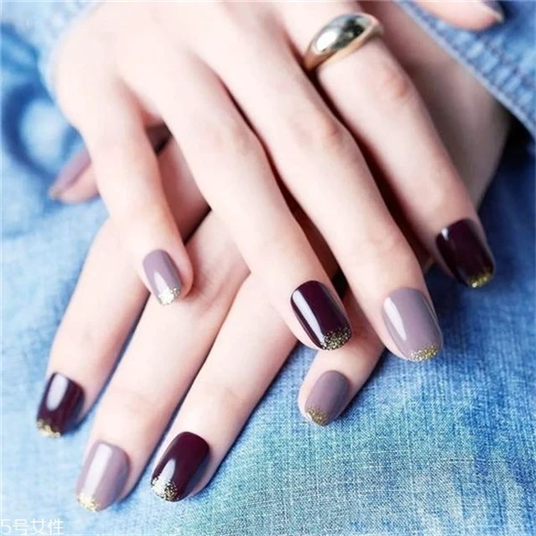 香芋紫是非常温柔的颜色,搭配酒红也是很好看的,指尖的金色就像空气中的精灵。