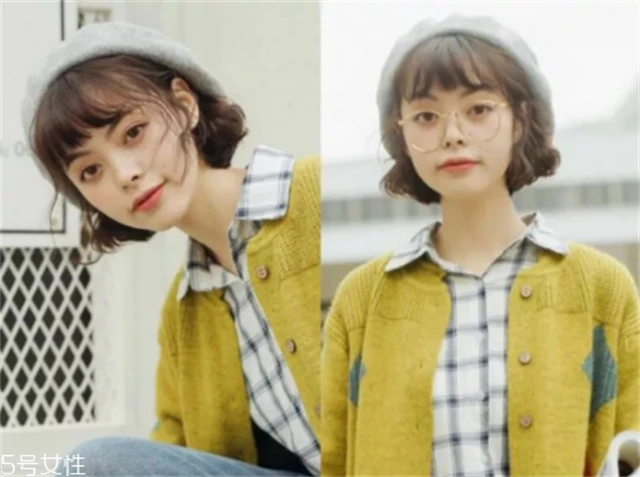 中间短,两边长的八字刘海,简单修剪出不同厚薄的层次感,遮挡住额头修饰完美的头型,搭配微烫卷的齐脖短发,烘托出女生恬静又不失灵动的文艺气息,有种唯美的艺术感。