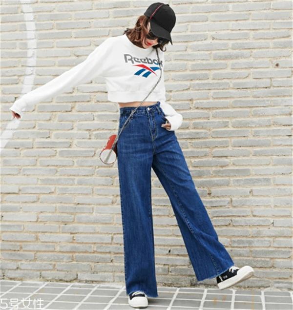 首先给大家带来的是阔腿裤的穿搭,阔腿裤就是给人一种很复古的气息,而牛仔阔腿裤要更加有休闲的味道,也会显得更加硬挺,看起来会比较利落,给人一种走路带风的感觉。
