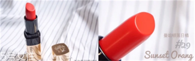 落日橙口红是元气鼻祖,并不是所有橘色都适合黄皮肤妹子,那种偏浅偏荧光的橘色简直是黄皮的灾难!但是那像这款加入红色调的橘色就是黄皮救星啦,不但显白还会给人青春有活力的印象。