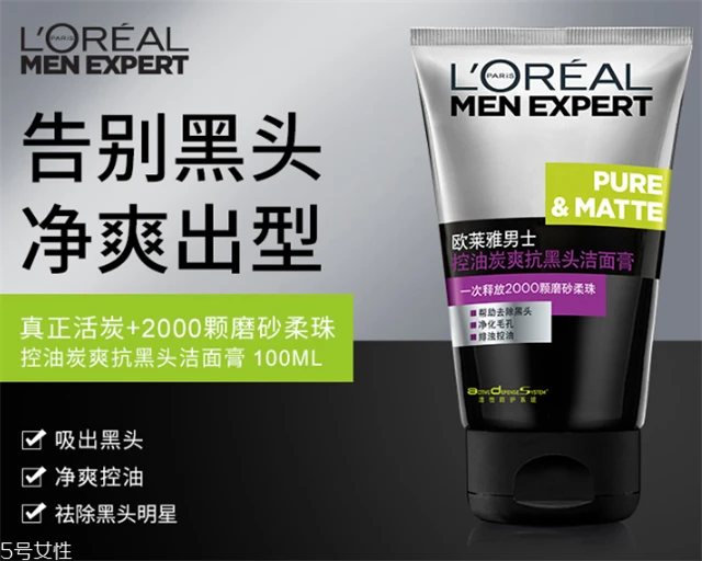 这款男士控油洗面奶,含有天然的冰爽活碳配方,能够把你毛孔里面的深层油脂污垢像磁石般被吸走,预防黑头以及粉刺的出现。