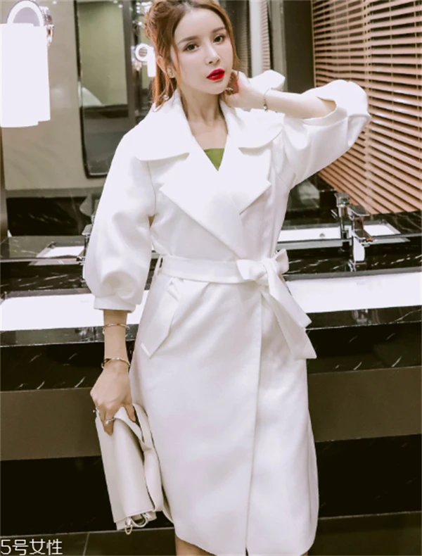 这件白色的风衣看上去就给人特别干净的感觉,穿着很大气,而且腰带的设计也能凸显身材,配上一双高跟鞋,绝对的ol风女王,不管是上班还是约会都是可以这样穿的。