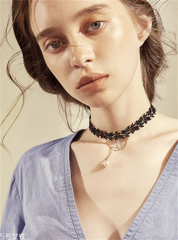 然后要推荐给大家的就是Choker了,也被很多人叫狗链,这种款式的项链是戴在锁骨以上的高度的,一般都是和脖子紧紧的贴在一起,会给人一种很复古的感觉,这两年在大街上面经常能看到很多年轻的小姑娘戴,其实也是很好搭配的。