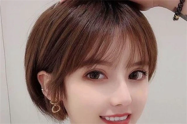 2、清爽齐耳短发造型,长空气刘海就是发际线高的女生留也适合,头顶三角区剪出一个刘海,微微弄弯配齐耳发甜美又减龄,兼具男孩子的帅气感和ol的知性气质,很适合都市年轻女性留。