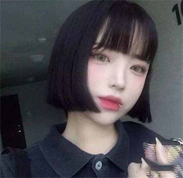 4、简单的短直发波波头,发尾剪裁比较厚重,加上齐眉刘海透着淡淡的复古风,有点公主切发型的感觉,适合长相甜美的女生留,天生脸小或是娃娃脸,想要更时髦就试试这款短发吧。