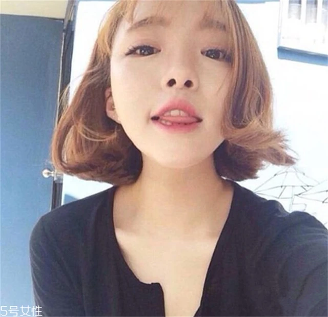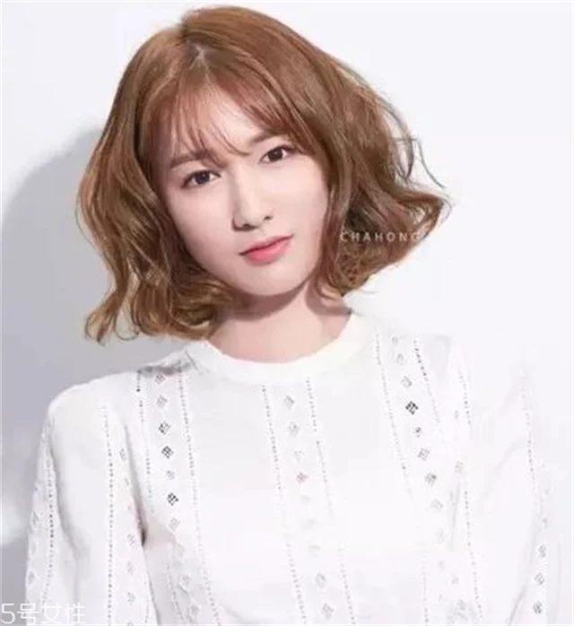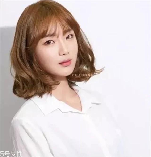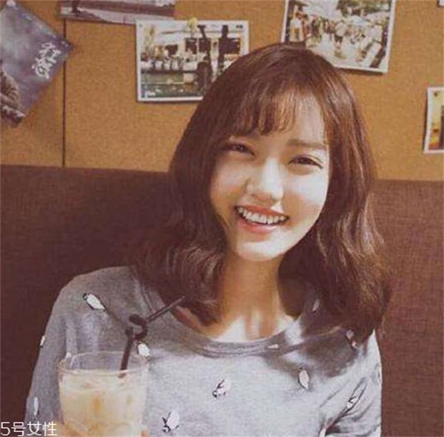 对女生来说,齐肩发+蛋卷头结合是一款非常非常时髦的发型,不仅韩范十足而且特别甜美惹人爱,配一点小刘海修饰额头更完美。
