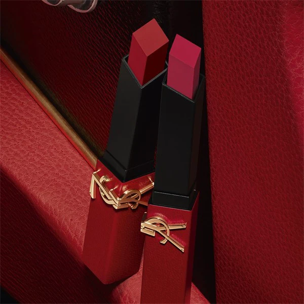 2022年七夕情人节推出的「极速追爱」限定包装,精选#21冷调莓果色、#1966经典罂粟红,换上高调红色皮革外套,从里到外都丝滑诱惑,在触手、上唇瞬间令人心跳加快。
