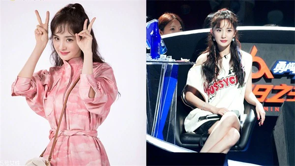 之前杨幂就尝试了超减龄的狗狗刘海,就是把原本的浏海加上交错内湾、外弯的卷,看起来有点凌乱,但这才是这个发型的精髓,也是所有浏海造型中最青春可爱的。