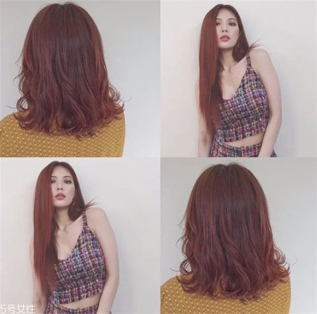 上图是颜色比较深的红栗色,下图是颜色比较浅的红栗色。红色系很衬肤色,看起来非常的日韩系。黄皮女生染了红栗色肤色会提亮很多,白皮妹子就更不用说了。
