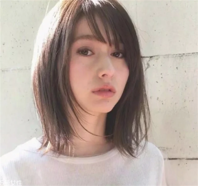 属于国字脸与宽脸的妹子可以考虑这款发量较多的中长发发型,沿脸颊洒落在肩头的头发,既可以散发出唯美动人的气息又可以柔化过硬的脸部线条,再配上轻盈的空气刘海就更是修脸减龄了。