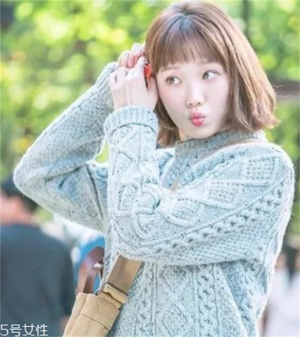 4、亚麻色:亚麻色绝对是这几年流行头发颜色中不可缺少的一款,发色时髦又好看,重点是很衬肤色,与各款发型都时尚百搭。亚麻色算是比较常见的一种发色了,介于红色和黄色之间,偏冷棕色系,比较温和。李圣经这一款短发特别适合可爱妹子选择,齐脖短发+短刘海既萌呆又俏皮可爱,亚麻色染发清新时髦更显白。