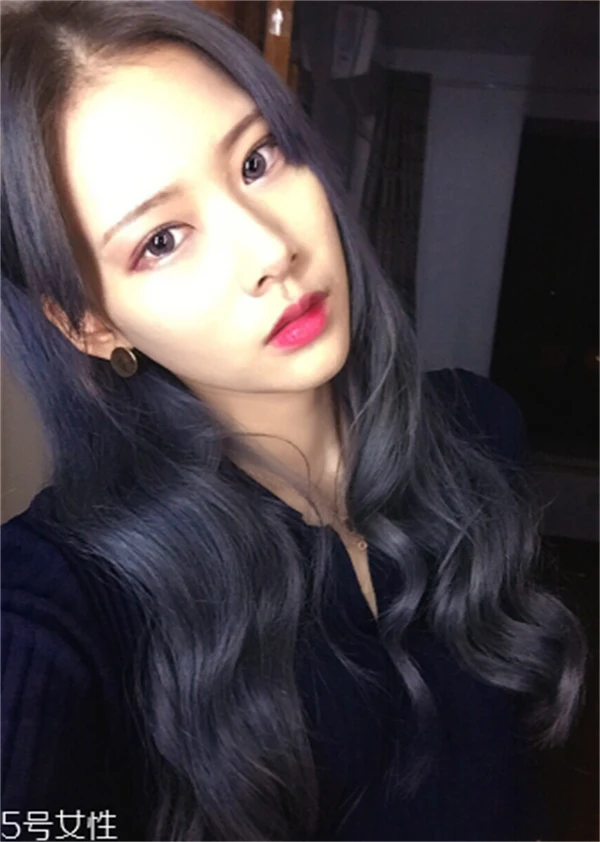 没有确切的发色名字是理发师调的,类似就是深蓝灰这种,图一颜色室内最准,可以看到有些挑染,这个发色室内外色差蛮大的,室内光线暗看上去深灰色带些蓝,室外偏奶奶灰,反正不同光线不同颜色,甚至自拍有时候偏蓝有时候偏紫。