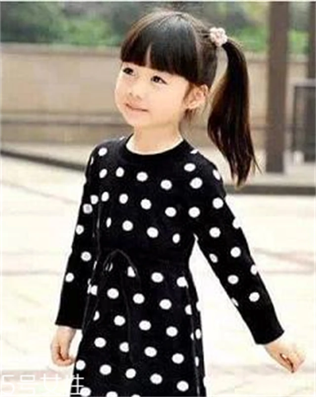 点评:想要打造一款纯真可爱的小女孩发型?小女孩发型设计首选齐刘海,一款萌感十足的齐刘海可以为小女孩的整体造型加分不少,然后摆脱常规的绑扎马尾方式,将宝贝的头发绑扎出斜马尾的效果,在绑扎马尾的时候,还要记得选择一款可爱的小发饰哦,这样会让小宝贝看起来更加的可人。