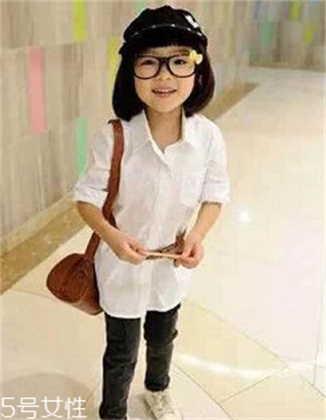 点评:厌倦了长发怎么办?给小女孩换一款短发BOB头发型吧。齐刘海加上内卷的发梢,既可以衬托出俏丽小脸,又能显出与长发不同的美感,戴上欧美风情帽子以及可爱的黑框眼镜、白衬衫、牛仔裤、白色休闲鞋,时尚小潮人就变身成功了。这样的小女孩发型,相信妈妈们一定都心动了吧,赶快去给宝贝试一下吧!