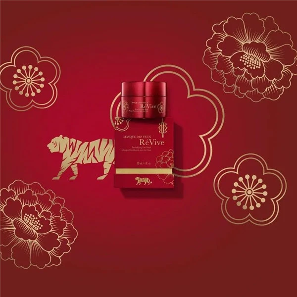 不仅瓶身,外盒包装同样印制了牡丹花、梅花及自百花中走出的金色福虎,象征福气、好运,RéVive Logo也饰以灯笼般的金色流苏,将东方物件赋以当代新的艺术诠释,不管自用送礼都适合。