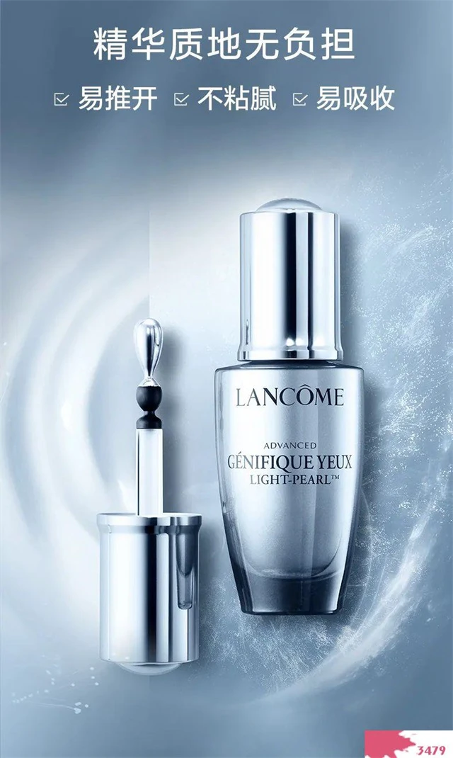 蝉联10年眼部精华销售冠军的兰蔻大眼冰珠:超进化肌因大眼精粹,凭借着「360°弹力冰珠」×「丰睫修护科技」,成就出无可比拟的业界的眼部保养专家地位!包含比菲德氏龙根菌、酵母萃取物等4种透过尖端生物科技制程萃取的益生菌成分,可强化肌肤对外屏障功能、维持肌肤环境平衡、促进新生。