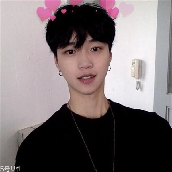 挺有韩式风格的一款潮流短发,前额头发设计成心形状,既个性又有范儿,配黑色短发更是帅到炸。