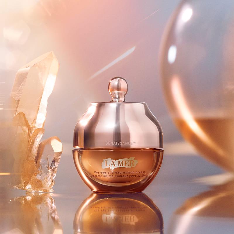 以顶级乳霜闻名全球的LA MER海蓝之谜,对于顶奢眼周保养市场当然不会缺席。由LA MER海蓝之谜实验室发现的原晶奇迹活凝金萃Crystal Miracle Broth™,结合创世纪肌因革新发酵精华,结合自然光的波长并添加精炼24K纯金,发酵淬炼为高度活性精华,有助激励肌肤真皮层中的胶原蛋白与弹力蛋白,脸部线条明显紧致拉提,轮廓减龄。再加上高倍浓度莱姆茶萃取,强大抗氧的修护能量,抵御环境因子对肌肤造成的伤害,LA MER海蓝之谜创世纪原晶眼部精华霜,柔滑、饱满,拉提紧致抚平表情纹。触感如丝缎般细致,玻尿酸弹润发酵精华拉提紧致肌肤,帮助肌肤锁住水份,平滑眼周细纹,改善泡泡眼与淡化黑眼圈。