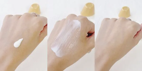 质地分析>>属于乳白色水感质地,很快就能涂抹均匀不泛白,几乎是秒推就均匀,亲肤感非常优秀的一款。