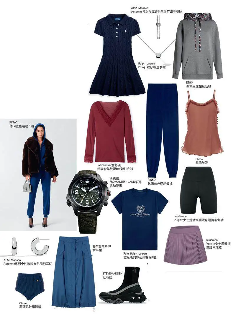 1.运动风+女性化单品,工装裤等经典运动单品,与蕾丝、薄纱、百褶裙等洋溢着少女情怀的元素巧妙混搭,利用对比美学强调个性和自我表达,完美展现Sporty Chic可盐可甜的多元魅力。