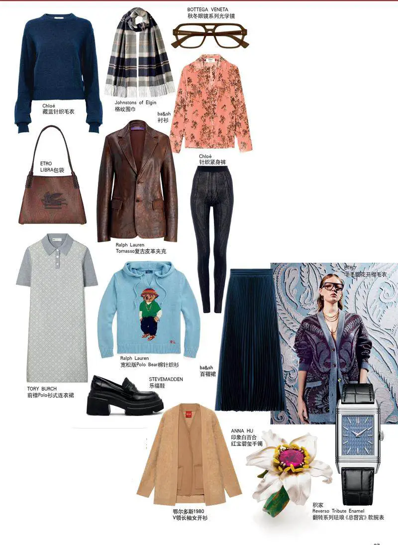 1.以棕色调为核心的怀旧复古色彩搭配,轻松营造出浓郁的复古氛围与时代感。暖色调给人一种温暖和复古的感觉,结合斑驳做旧的图案肌理,局部搭配金属亮色体现New Vintage的过去与未来的碰撞。