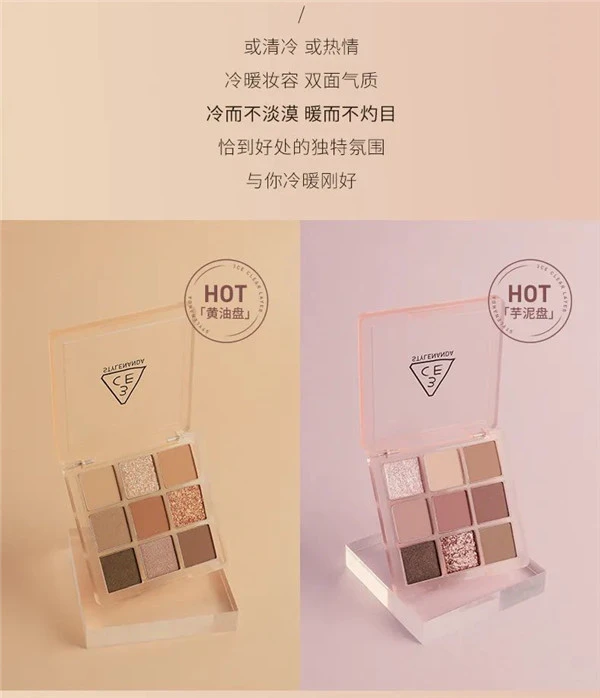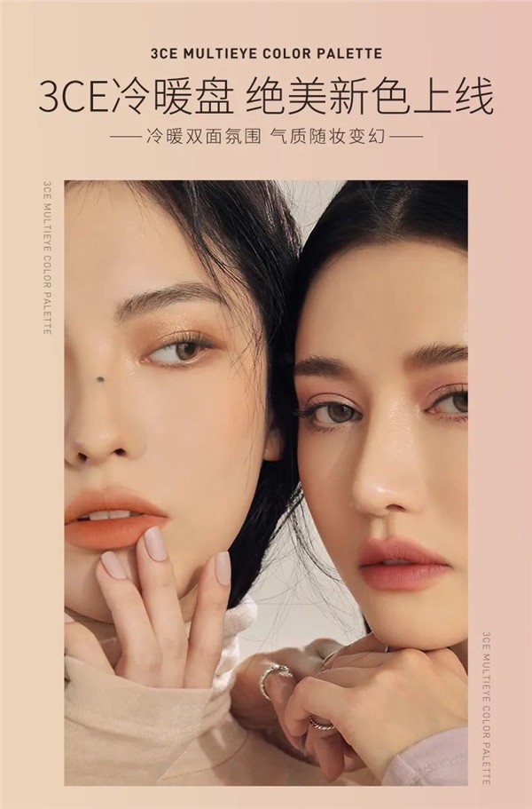 3CE律动美学系列眼影盘,精心调制配色,展现自由色彩的百变眼妆。加成双面个性外壳,挥洒独到美学态度。