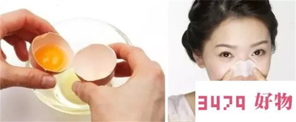 02【蛋清去黑头】把鸡蛋敲出一个小洞,将里面的蛋清都倒出来,再找一张纸巾或者化妆棉,浸入蛋清中,将浸泡好的化妆棉贴在黑头多的地方,等它自然风干变硬后,再从两边开始将其揭下来,会发现很多黑头都会被拔出来了!此外,蛋清还有紧肤作用,对收缩毛孔,改善皱纹也很有帮忙。
