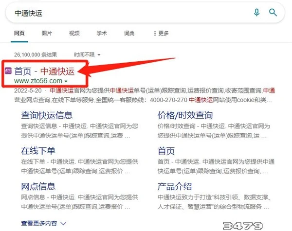 1、在浏览器搜索框输入“中通快运”,搜索后点击进入官网;