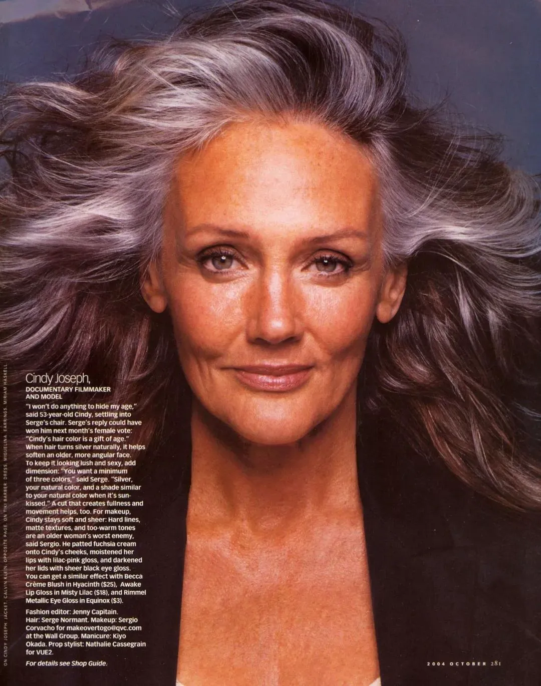 既然无法返老还童,不如像Cindy Joseph那样,从容面对皱纹和白发,美到“秒杀”小仙女。