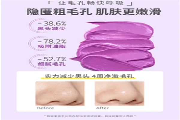 974泥膜它的颜值真的超级高,包装也很有质感,磨砂外壳和泥膜都是紫色的,涂在脸上超可爱。泥膜质地很好不会拔干,闻起来有种淡淡的葡萄味,个人属于毛孔比较粗大,黑头比较多的肤质,清洁完后脸滑滑的脏东西都出来啦,以后坚持每周清洁3到4次改善毛孔粗大。敷完泥膜之后也别忘补补水,湿敷或者来一片补水面膜。