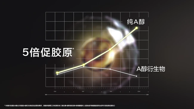 ** 5倍:指1浓度的A醇比5浓度的A醇衍生物促生胶原效果好,数据来源第三方检测机构《维生素A醇和维生素A棕榈酸酯对人皮肤成纤维细胞胶原生成评价实验测试报告》