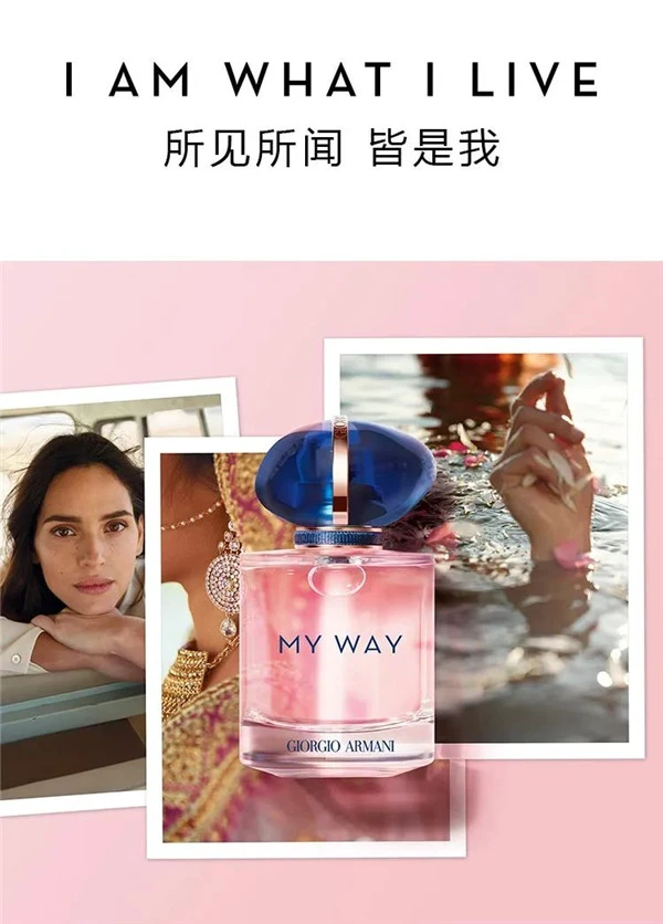 MY WAY自我无界女士香水始于探索与联系,专为开放坦率、充满好奇和真诚的女性打造,陪伴她们开拓视野,沉浸在世界各地意味深长的偶然相遇。这款柔美香氛汇集各种甄选原材料。佛手柑与埃及橙花呈现明媚的前调,中调则是晚香玉和印度茉莉交织而成的白花香气,愈发明亮动人。最后,活力的弗吉尼亚雪松与马达加斯加香草和白麝香融合,成为点睛之笔。所闻所见,皆是我。I AM WHAT I LIVE.