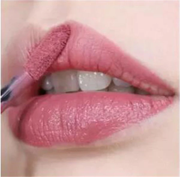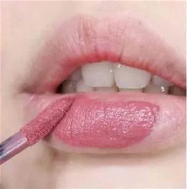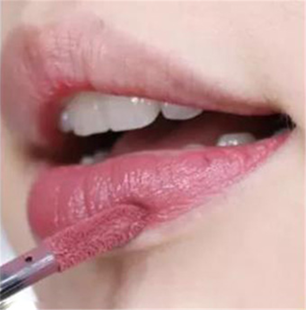 第一步:其实要涂好唇釉没有想象中的那么简单,还是有一些技巧的。首先将刷头放平,从下嘴唇的中间开始涂。