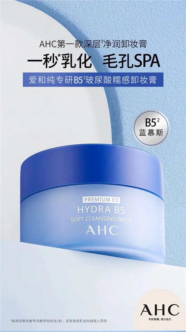 洞察到消费者在卸妆时因过度清洁导致肌肤屏障受损、浓妆残留造成毛孔频繁堵塞闷痘等肌肤问题,AHC「专研B5玻尿酸」明星家族重磅官宣全新成员——AHC爱和纯专研B5玻尿酸糯感卸妆膏,采用精选软糯冰淇淋质地及温和配方,辅以柑橘精油调配,让消费者在每一次卸妆时,毛孔都宛如在做SPA,为大众美丽开启卸妆新净界。