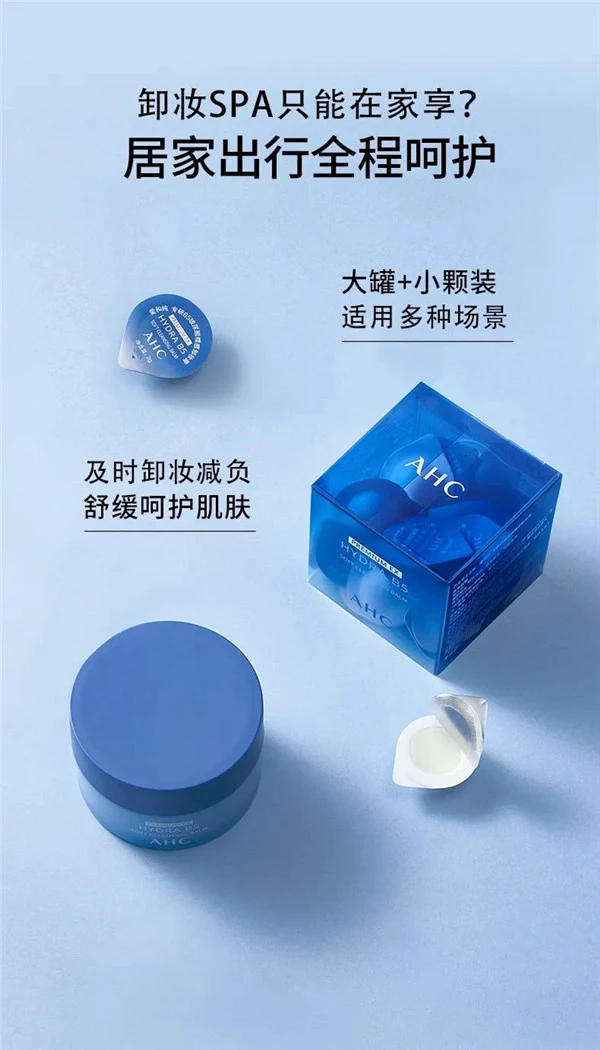 为了满足消费者居家与出行的多种卸妆场景需求,AHC专研B5玻尿酸糯感卸妆膏兼顾便利性与性价比,贴心推出双款包装,分别是100G大罐装与30*2G小颗装,让消费者无论在家还是差旅途中,都能随时随地开启私享美肤SPA馆,及时卸妆减负,为肌肤带来呵宠时光。