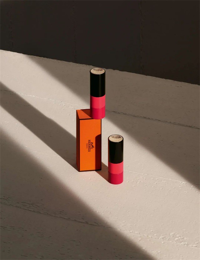 爱马仕美妆产品设计师暨爱马仕鞋履及珠宝部门创意总监 Pierre Hardy,亲自为这款唇膏设计了亮 眼的管身新装:一圈粉妆玉琢般的洋红色,配上一圈更为深邃浓烈的红宝石色。