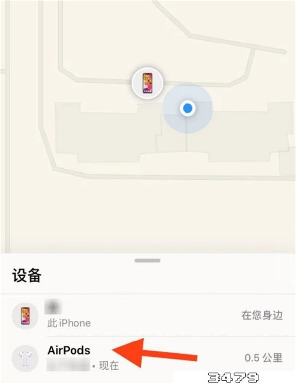 5、系统会自动获取AirPods的位置,点击右下角【出发】去找耳机;