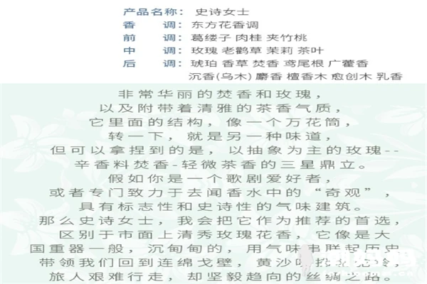 AMOUAGE的留香持久时间也是很悠长的,喷一下就能够让你周身的香气久久围绕。史诗是乌木玫瑰味道的,这种味道真是从来都没有闻到过,浓郁中还夹杂了别样的高级感,真的是一闻定终身的感觉。这款香水也是出了名用料不计成本的,使用名贵香料,形成了丰富层次与香气的独特性。是一种女王般的香调,有刚柔并济的气度。乌木玫瑰的香气组合让柔与力量并进,是自由女性精神面貌的延续!