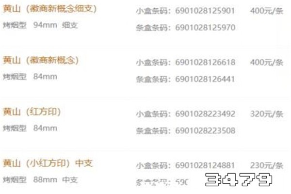 安徽本土的烟草生产公司是安徽中烟工业公司蚌埠卷烟厂,始建于1958年,在1993年成功开发了(特制黄山)系列,黄山系列的价格表如下: