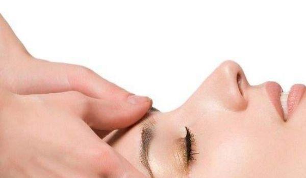 舒展额头:以指腹由眉间开始,把肌肤向上轻推按摩;再顺着额间,以螺旋状手法向太阳穴方向按摩,最后在太阳穴位置按压3秒。