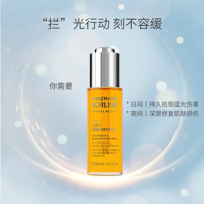 于是,一个划时代的产品——「3合1防蓝光精华油」就此诞生!凝聚了安娜柏林62年科研成果以及天然有机护肤理念,专门为皮肤立起一道天然的屏障,减少蓝光对皮肤、角化细胞和纤维细胞的损害!