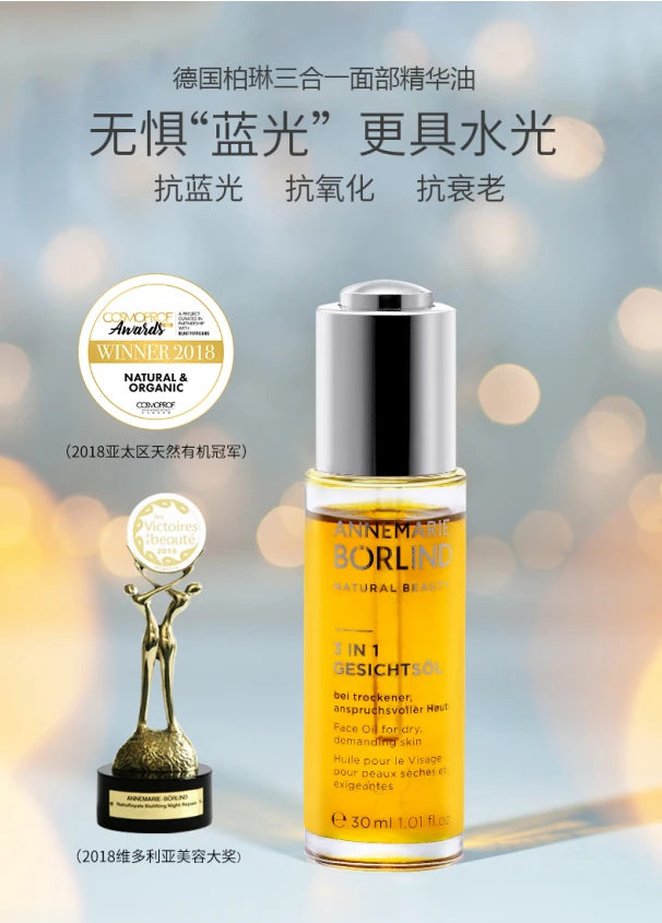 这也进一步佐证,在全球范围内都很难再找到类似于「3合1防蓝光精华油」这样的精华油,可以预见,随着各种电子设备的增加,我们对蓝光的预防也需要提上日程,安娜柏林的这款「3合1防蓝光精华油」,很好地满足了我们对保护皮肤免受蓝光损害的需求,在不远的未来市场也将愈加广阔。
