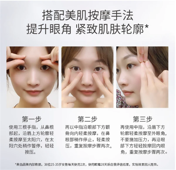 (3) 小白挚爱,使用轻松。使用手法特别简单,护肤小白也能轻轻松松地收获明亮双眼,使用前眼周纹路又多又暗,睫毛稀疏短小,使用后眼周明显暗沉减少,毫不费力给双眸增添魅力。