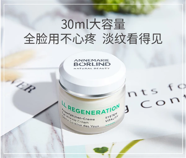 重生眼霜,全称是重生抗皱眼霜,具有安娜柏林开发实验室所研制的“LL-生物复合精华LL-Biokomplex”作为核心成分,帮助千万女性解决肌肤年龄问题。